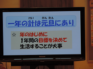 学校長からは、「一年の計は元旦にあり」という言葉に触れ、年の初めに目標を立てて目標に向かって頑張り続けることの大切さや、今の学年のまとめであり次の学年の準備期間でもある3学期の過ごし方についての話がありました。