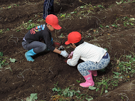 先週の5・6年生の稲刈りに続き、今日は、3・4校時に、1・2年生が生活科で育ててきたサツマイモのいもほりを行いました。