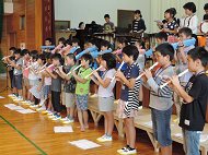 閉会式では、講評の先生から、「合奏では、楽器の掛け合いもよく、リズムもしっかり取れていました。振り付けで会場も盛り上がりました。斉唱は、全校のみんなの心が一つになっていました。歌声からも波の音が聞こえそうで、優しい気持ちになりました。」ととてもうれしい言葉をいただきました。