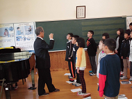ところで、この合唱を迎えるにあたり、当日の指揮者で、3つのコーラスグループの指導をしていらっしゃる町内在住の興梠純一さんが押方小に2回来校され、4~6年生のために事前の出前指導をしてくださいました。たった2時間でしたが、子どもたちをリラックスさせながら、おもしろおかしく頭声的な発声法を指導してくださり、子どもたちの歌声もみるみる変わってきました。さすがでした。短時間での成長に、私たち教員も、その専門性を生かした指導に多くを学ぶことができました。