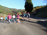 これまでは、運動場(1周約200m)を5分間周回する練習でしたが、今日からは、12月1日(金)の持久走大会のコースである学校外周コース(1周約360m)を使っての練習も始まりました。