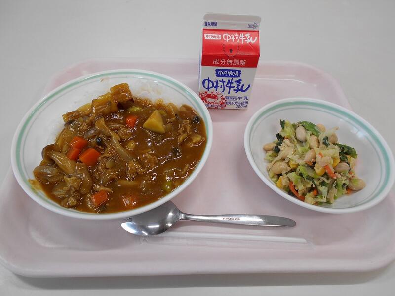ドライカレー、ひじきとチーズのサラダ、牛乳