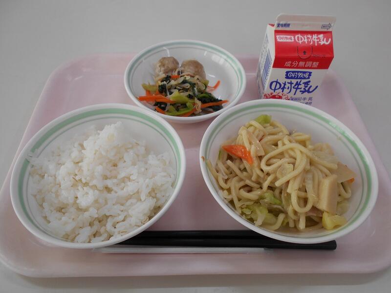チャーハン、牛乳、汁ビーフン、ごぼうサラダ