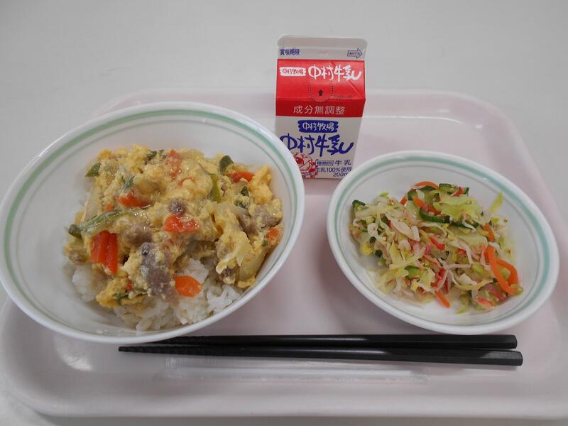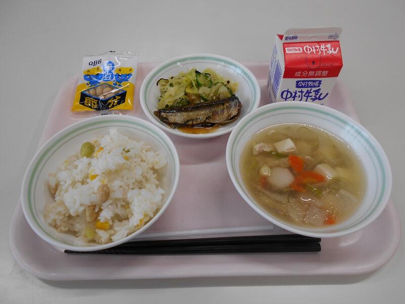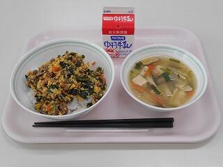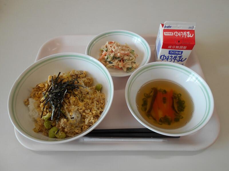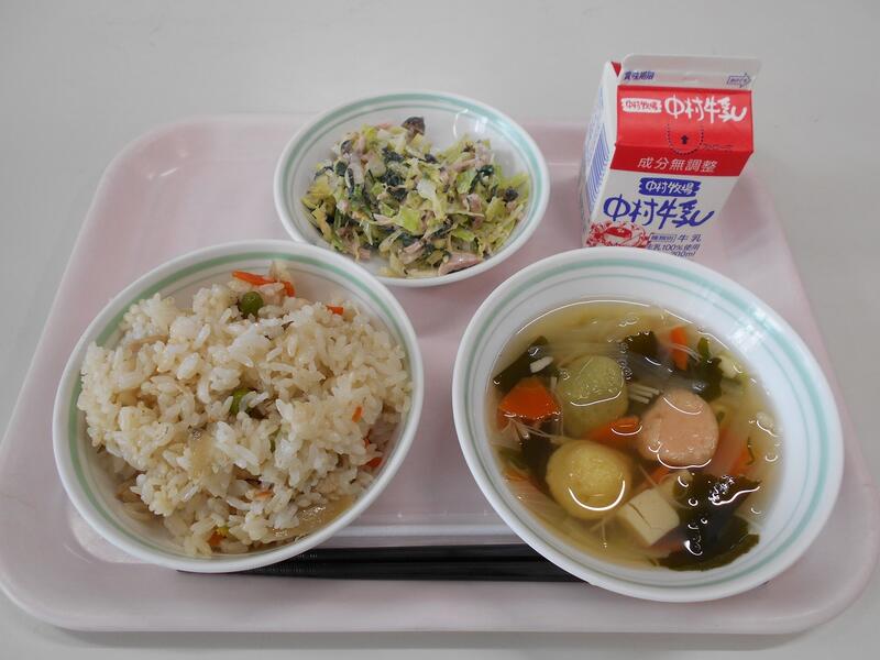 とりめし、いそマヨネーズ和え、すまし汁、牛乳