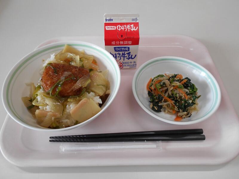 厚揚げの甘辛煮、みぞれ汁、麦ごはん、牛乳
