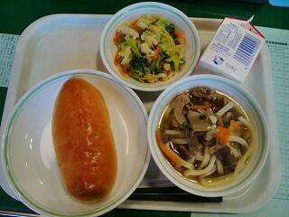 ミルクパン、牛乳、カレーうどん、納豆サラダ