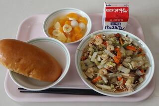 ミルクパン、牛乳、長崎皿うどん、フルーツ白玉