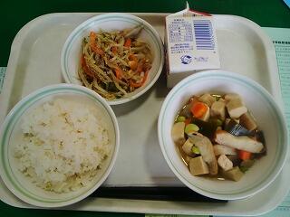 今日は『けんちん汁、魚のゆずみそかけ、こんぶ