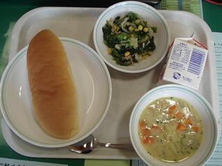 今日は『キャロットパン、鶏肉のエスニカン、ほうれん草と