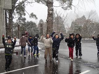 2月5日(水)は昨夜からの雪が積もり、学校周辺は一面の銀世界。その中をいつものように嶽宮神社からの1.3kmを元気に歩く子どもたち。極寒の中、子どもたちの安全確保のために一緒に歩いてくださる見守り活動の皆様に改めて感謝いたします。雪が降り寒いのですが、子どもたちは久しぶりの積雪を楽しんでいました。