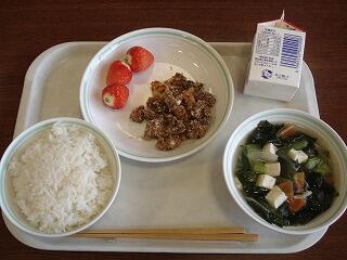鶏肉もおいしかった『かき玉汁』に牛乳とミカンでした。