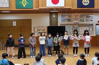 12月5日(木)に図書委員会の児童、図書主任、図書事務職員が中心となって読書集会を行いました。読み聞かせや多読賞(100冊以上)の表彰、読書推進活動に進んで参加した児童へのオリジナルしおりのプレゼント配付などを行いました。また、今まで読書をした結果で各自が作成したビンゴカードを使ってビンゴ大会もしました。ビンゴになった児童は先生方から提供された景品をうれしそうに選んでいました。これからも進んで読書に親しむ子ども達であってほしいなと思います。職員も図書館教育の充実を進めてまいります。