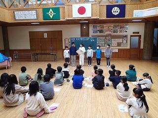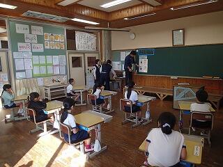 高千穂町観光協会の方が講師になり、4・5年生が高千穂町全体のことや押方地区のことをクイズ形式で楽しみながら学習しました。およそ3週間後には高千穂検定を受けることにしています。全員合格目指して、さらに高千穂町のことを知って、ふるさと高千穂に誇りと愛情をもってほしいと思います。