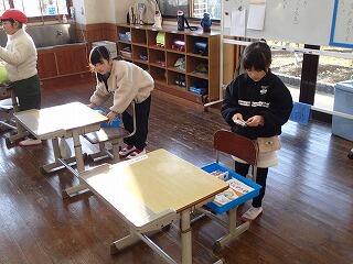 昨日の全校朝会で生徒指導主事が説明した学校ピカピカ大作戦が早速始まりました。今朝は「片付けタイム」の時間に自分の机やロッカーの整理整頓をしました。しっかりできた子どもは担任からシールをもらって、それをもみの木の絵にうれしそうに貼り付けてました。このような活動を続けていくので、学校もさらにピカピカになり、もみの木の絵もきれいに飾り付けできそうです。整理整頓や掃除をがんばる子ども達の心もピカピカ光ることでしょう。