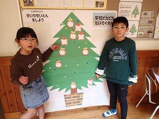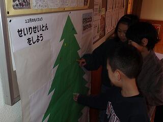 掃除の時間に頑張っている子ども達は、先生方から称賛のカードをもらいました。そしてそのカードをもみの木の絵に貼り付けています。学校ももみの木もどんどんピカピカになっています。2学期残りわずかですが、さらにきれいな学校を目指して掃除に取り組んでほしいと思います。