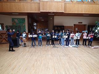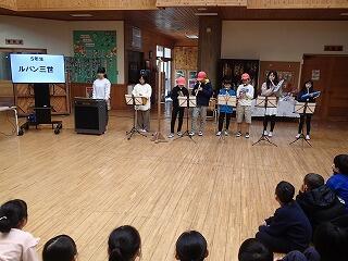 音楽の時間に3・4年生は合奏をしました。打楽器のリズムに合わせてそれぞれの担当楽器の音が多目的ホールに響き渡りました。みんなの心が一つにそろった上手な演奏ができていました。この時間の前には、5年生も音楽で合奏を頑張っていました。