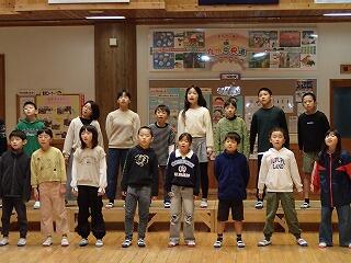 1時間目に音楽フェスティバルの撮影を多目的ホールで行いました。先日の式典で歌ったオリジナルソング「ひとつの輪」「最高の1日になーれ!」の2曲を披露しました。4年生は学校紹介の発表もがんばってくれまた。子ども達の元気な歌声が校舎内に響き渡り、気持ちのよい1日がスタートできました。