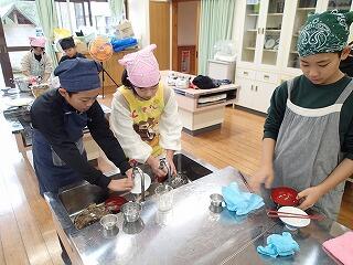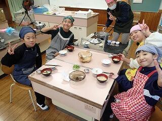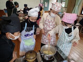 5年生は家庭科で調理実習を行いました。今回はごはんと味噌汁を作りました。だしを取ったり、お米に吸水させたり、きちんと手順を確認し、子ども達は協力して作業を行いました。おいしく食べた後は、片付けまでがんばりました。今回のお米は、地域の方のご協力のもと、自分たちが田植えをして、稲刈りしたお米だったので、おいしさ倍増で完食でした。お米をいただきありがとうございました。今回の学習を生かして、家でも保護者と一緒に料理に挑戦してほしいと思います。