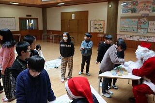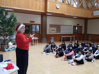 11月29日(金)の4時間目に全校で国際交流活動を行いました。国によってクリスマスやサンタクロースの様子が少し違うことやクリスマスカードのかき方などをについてALTに教えていただきました。今まで学習した会話文や「I want ~.」などを使って、いろんな色や形の色紙やシールなどを集め、カードをカラフルに装飾しました。最後に自分が欲しいものをかいたカードをクリスマスツリーに飾り付けました。この木は地域の方が毎年提供してくださっています。今年度も快諾してくださいました。いろんな方の協力のおかげで、子ども達は楽しい国際交流活動を行うことができました。