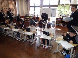 12月2日(月)に学校支援訪問がありました。高千穂町教育委員会及び北部教育事務所から8名の方が訪問されました。学校経営等について説明したり、子ども達の学習の様子を参観していただいたりしました。押方小自慢のおいしい給食も食べていただきました。今回の訪問で指導・助言いただいたことを今後の教育実践へつなげ、さらに魅力ある押方小学校にしていきたいと思います。押方小の子ども達は目を輝かせて授業に集中していること、自分から気持ちのよいあいさつをできること、話の聞き方がしっかりしていること、笑顔が素敵なことなど、たくさんのお褒めの言葉をいただきました。