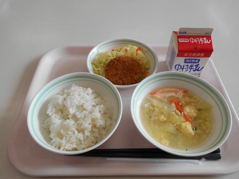 ミルクパン、牛乳、たこやき風、もずくのスープ、デザート