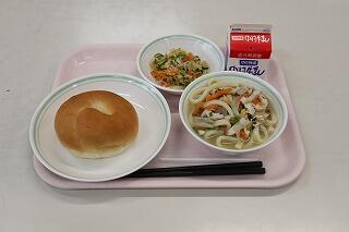 コッペパン、牛乳、五目うどん、ちりめん和え