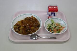 麦ごはん、牛乳、夏野菜カレー、日向夏ドレッシングサラダ