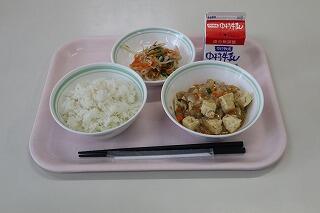 麦ごはん、牛乳、マーボー豆腐、中華サラダ