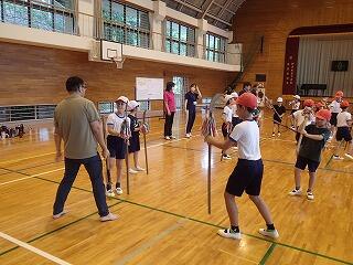 地域の指導者を招いて、全校児童でなぎなた舞いの練習を行いました。毎年、地域の指導者の方々にはご協力いただいており、感謝申し上げます。