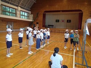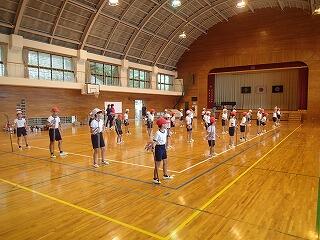 今日の全校体育は、運動場のコンディションが悪かったので体育館で行いました。今回はがまだせ節を踊ったり、全学年で行う全員リレーの走順や並び方などの確認をしたりしました。最後は各団に分かれて応援の練習を行い、体育館中に子ども達の元気な声が響いていました。次は運動場で思いっきり体を動かせるといいです。