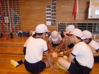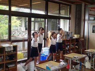 3年生は理科で太陽とかげについて学習するので、運動場に出て影絵遊びやかげふみ遊びをしました。汗いっぱいになりながら運動場を走り回っていました。遊びの後に気づいたことを質問したら、「日なたより日陰の方がすずしい。」「日陰にいるとかげはできない。」「かげは同じ方向にできている。」「かげを踏まれやすいときと踏まれにくいときは、かげの向きが関係している。」「太陽と反対側にかげができている。」などと多くのことを発表することができていました。遊びを通してたくさんのことに気づいた3年生でした。