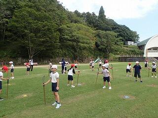 9月26日(木)の5時間目に地域の方々に協力していただいて2回目のなぎなたの練習を行いました。この前、体育館で動きの確認をしたので、今回は運動場で実際の立ち位置や入退場の仕方を確認しました。だんだんと教師の指示がなくても、自分たちで動きを覚えて上手になぎなたの舞いを行えるようになってきました。あとは、予行練習でもう一度舞って本番で練習の成果を披露します。お楽しみに!