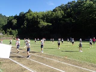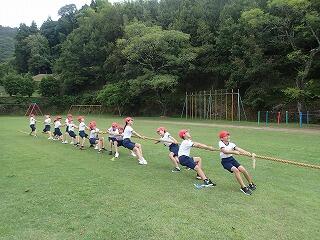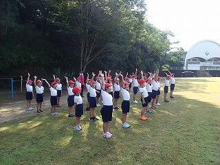 9月19日(木)は健康観察をしたらすぐに全校体育を行いました。2回目の今回は、身だしなみの確認をした後に入場行進、開閉開式、綱引き、応援など練習をしました。子ども達はとてもよく頑張っていて、体育主任からは子ども達をほめる言葉かけがたくさんありました。空にも子ども達のやる気が届いたのか、1時間目が終わるまでは雨が降らずに予定通りに練習を行うことができました。練習をするたびに、前回の反省を生かしてどんどんよい姿が増えている子ども達です。