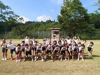 PTA奉仕作業のおかげできれいになった運動場。早速、9月3日(火)1時間目に全校体育を行いました。体育主任から、移動を素早くすることや無言で集合すること、元気に体育学習に参加できるようにしておくことなどの再確認がありました。子ども達はそれを真剣に聞いていました。