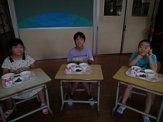 8・9月が誕生日の子ども達や職員、以前の誕生給食会の時にお休みしていた児童が一堂に会して、楽しい給食の時間を過ごしました。担当職員からのメッセージカードやスペシャルデザートまでもらえて、みんなニコニコうれしそうでした。