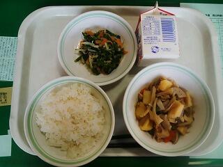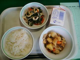 となりました。今日の給食『筑前煮、ほうれん草とツ