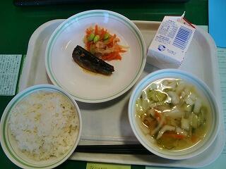 日は『いわしのしょうが煮、添え野菜、白菜スープ』