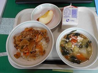 今日は『豚キムチ丼、春雨スープ、リンゴ』でした。