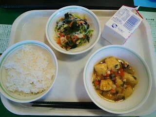 今日は『揚げ豆腐のあんかけ、春雨の酢の物』でした。