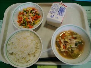 今日の給食は『根っこ野菜のサラダ、白菜のク