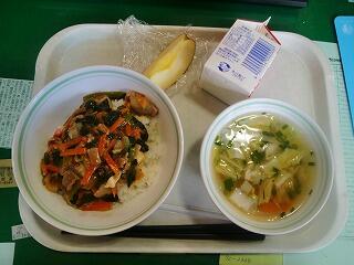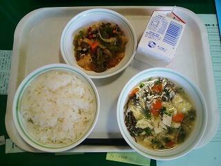 今日は『もずくスープ、チンジャオロース』でした。