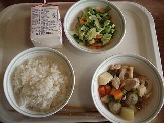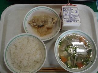 今日の給食は『魚のおろし煮、みそけんちん汁』でした。