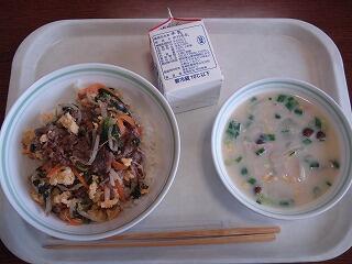 今日の給食は『ビビンバと豆乳コーンスープ』どちらもお