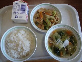 今日の献立は『麦ご飯,ワンタンスープ,回鍋肉』でした。