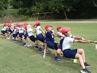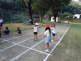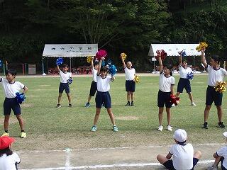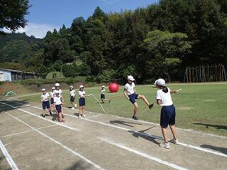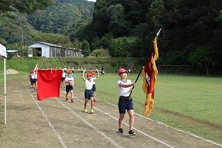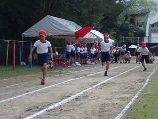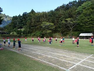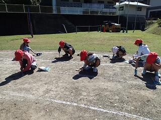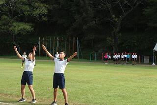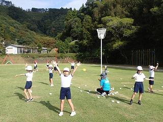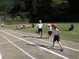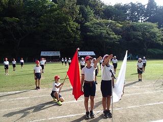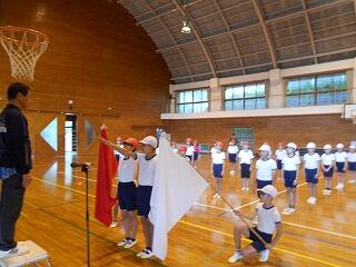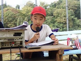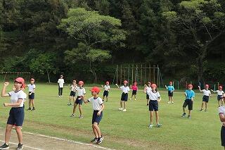 10月2日(木)は朝早くから運動場に集合して、全校体育を行いました。今回は開会式、エール交換、リレー、ダンスなどの練習を行いました。1年生の4人はマイクに向かって元気よくあいさつの言葉を言っていました。時間いっぱい大きな声を出したり、素早く移動したりして、とてもがんばっている子どもたちです。