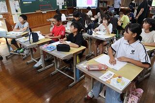 9月26日(金)に町内の小中学校の先生方や町教育委員会の方々が本校に集まり、研究会を行いました。5・6年生が複式指導で算数の学習をする様子を見ていただきました。多くの先生方に見られて緊張しながらも、一生懸命に考えたり、話し合ったり、発表したりする姿がたくさん見られました。