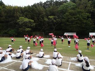 体育の時間だけでなく、昼休みも運動会に向けて頑張っている子どもたちです。リーダーが昼の放送で呼びかけて、団ごとに応援の練習をしたり、自分たちでバトンを借りてリレーの練習をしたりしています。自主的に頑張っている姿が素晴らしいです。