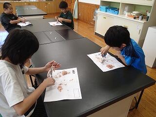 4年生は、理科で骨と筋肉の関係について学習しています。今回の授業では、鶏肉のモモに付いている白い筋を引っ張ったり、手羽先を切って骨と筋肉のつながりを確認したりしました。手羽先を動かして関節の仕組みも学びました。とても楽しそうに学習に取り組む子どもたちでした。