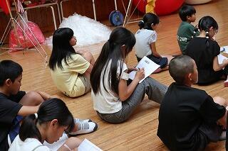 5・6年生が自主的にイベントを計画し、全校に呼びかけて宝探しをしました。お月見イベントということでお月様の形をした宝を図書館の中から探し出すという内容で、多くの子どもたちが楽しそうに参加していました。