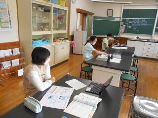 今月は、秋の読書月間です。それで、朝の読み聞かせを図書委員の子どもたちが行っています。それから、5・6年生が、ミシンを使っての活動をしていました。新しい電動ミシンを使っての作業ですが、ちょっとおっかなびっくりとした様子で作業をしていました。慣れないうちは、とても慎重な子どもたちでした。